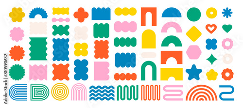 Abstract geometric shapes and icons. Colorful groovy brutal figures. Modern Swiss design aesthetic.
