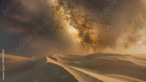 Fototapeta - Surreal desert landscape with towering sand dunes backdrop