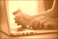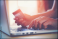 Fototapeta - Hands holding credit card and using laptop. Online shopping