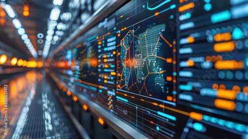 Fototapeta - Blockchain consensus mechanism, augmented reality display, hightech workspace