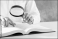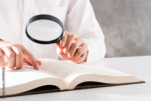 Fototapeta - 虫眼鏡を使って本を調べる男性