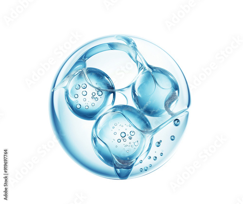 Fototapeta - Molecules inside bubbles on blue background Collagen serum bubble