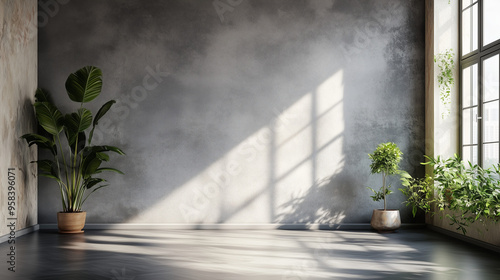 >Naklejka na meble>Wnętrze pokoju w całkowitej pustce, z jednolitą ścianą i prostą podłogą. Brak jakichkolwiek elementów wyposażenia, co nadaje przestrzeni surowy, neutralny charakter.
