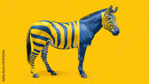 Fototapeta - Zebra painted in Ukrainian flag colors