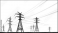 High voltage power line pylon towers for electric transmission infrastructure Electrical Engineering Electricity Supply Technology illustration white backdrop
