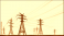 High-voltage power lines, triangular lattice electricity pylons with wires, silhouetted steel towers carrying electric transmission powerlines, electrical current cables network gridlines