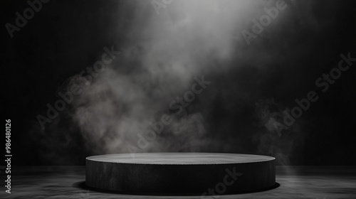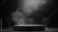 Fototapeta - Ciemne podium na czarnej podłodze, zanurzone w delikatnym dymie, tworzy intymne i tajemnicze tło.