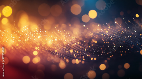 Efektowna kompozycja przedstawiająca jasne włókna optyczne, które wiją się i rozpraszają światło.