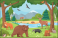 Forest animal landscape. Wild animals in woodland nature background, wildlife ecosystem natural fauna habitats wood land trees environment scene, cartoon neat vector illustration