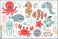 >Naklejka na meble>Przeznaczenie>Pokój dzieciecy>Cute underwater sea animals set in cartoon doodle style – octopus, whale, crab, seahorse, clownfish, jellyfish, and more for kids room, posters, and educational design