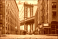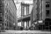 >Naklejka na meble>Tematy>Nowy York>Manhattan Bridge between Manhattan and Brooklyn over East River seen from a narrow alley enclosed by two brick buildings on a sunny day in Washington street in Dumbo, Brooklyn, NYC