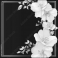 Białe kwiaty w ramce na czarnym tle z miejscem na tekst, życzenia weselne