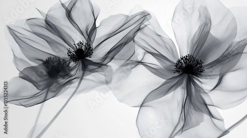 Fototapeta - Czarne abstrakcyjne kwiaty na białym tle, tło dla projektu generative ai.