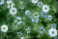 Fototapeta - Biało niebieskie kwiaty czarnuszki, widok z góry tło dla projektu, tapeta.