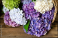 Fototapeta - kolorowe kwiaty hortensji na brązowych deskach