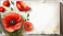 Biała kartka z miejscem na tekst otoczona czerwonymi kwiatami maków