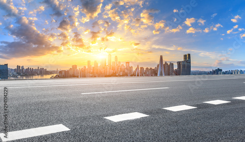 Fototapeta - Asphalt highway and modern city financial district skyline in Chongqing at sunset,China.