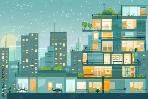 Night Cityscape with Modern Architecture and Illuminated Windows