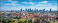 Aerial panorama of Warsaw, Poland over the Vistual river and City center in a distance