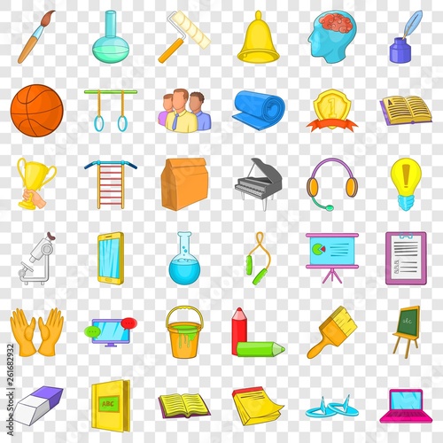 Fototapeta - Education in school icons set. Cartoon style of 36 education in school vector icons for web for any design