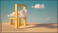 >Naklejka na meble>Tematy>3D>3d render, Surreal desert landscape with white clouds going into the yellow square portals on sunny day. Modern minimal abstract background