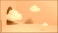 Fototapeta - 3d render, abstract minimal yellow background with white clouds flying out the tunnel