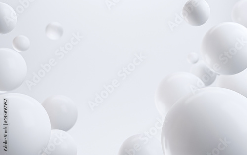 Abstract background with white bubbles. Realistic 3d background. 3d rendering