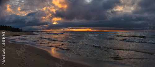 Fototapeta - Pochmurne nocne niebo nad morzem