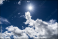 Fototapeta - Niebieskie niebo i słońce między chmurami