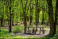 Fototapeta - drewniany stół i ławki w lesie