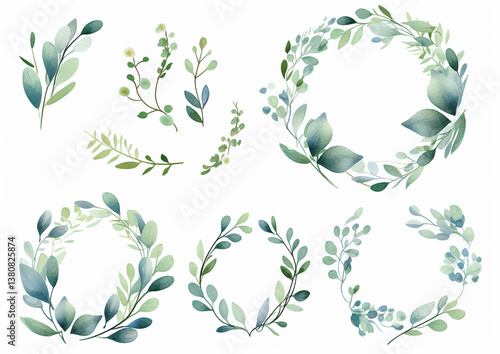 Fototapeta - リーフ葉水彩画イラスト素材 セット generative ai