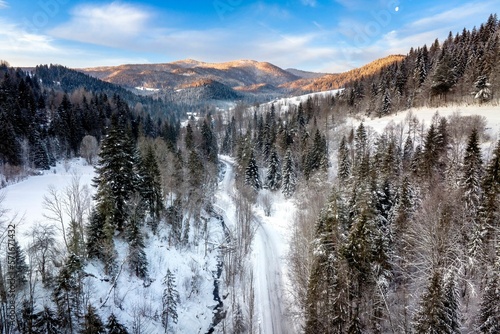 Fototapeta - Zimowy, śnieżny poranek w Gorcach w miejscowości Szczawa