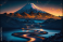 Błękitna i złota godzina nad górą Fuji w Japonii