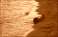 Fototapeta - Mokry konar leżący na plaży. Zaciemnione zdjęcie przedstawiające plażę.