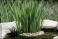 Fototapeta - Serene Pond with Lush Green Reeds and Stone Edging