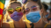 Na parady równości, pośród tłumu wesołych uczestników, znajduje się dziewczyna, której twarz jest głównym punktem zainteresowania.