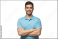 Smiling handsome man in blue polo shirt standing with crossed arms