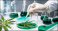 Laboratorium medyczne, zielone kolory, płyn w szklanej butelce, roślina konopi w próbce
