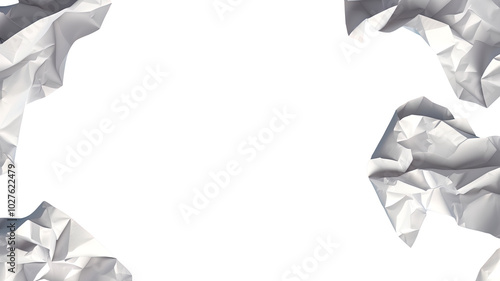 Fototapeta - zgnieciony kawałek papieru, zgnieciona tekstura papieru, złożony, złożona geometria, zgnieciona gazeta jako tekstura, zagięcia, dynamiczne zagięcia, wyodrębnione z tła