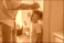 Fototapeta - Father placed his son near the door frame and measured his height.