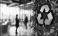 Green wall with a recycling symbol, symbolizing eco-friendly practices in a modern corporate office setting.