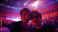 Dwóch młodych mężczyzn, którzy z uśmiechami na twarzach pozują na tle rozświetlonej sceny w ogromnej hali koncertowej.