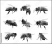 bee isolated, Set sixteen bees or honeybees Apis Mellifera