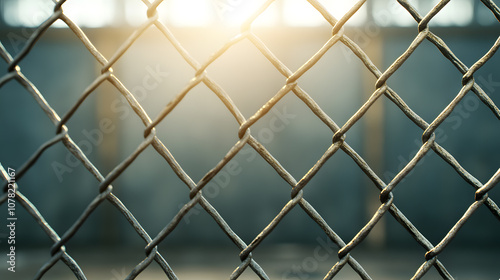 Fototapeta - Chain-Link Fence Surround the stage with light entering from above