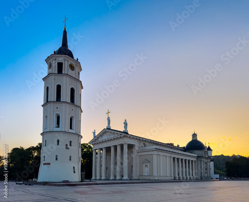 Vilnius Cathedral Basilica and bell tower at sunrise, Lithuania