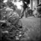 Fototapeta - Gardener edging flowerbed with bright orange and yellow blooms in lush backyard