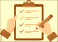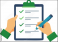 Paper clipboard, checklist form. Hand holding sheet with checklist. To-do document. Cartoon questionnaire document