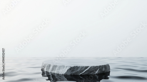 Kamienny podium w wodzie, uchwycony z góry, na minimalistycznym białym tle, oferujący szeroką przestrzeń do umieszczenia treści.