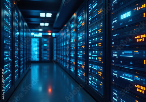 Fototapeta - information technology databases use concept disk storage large data centers technological