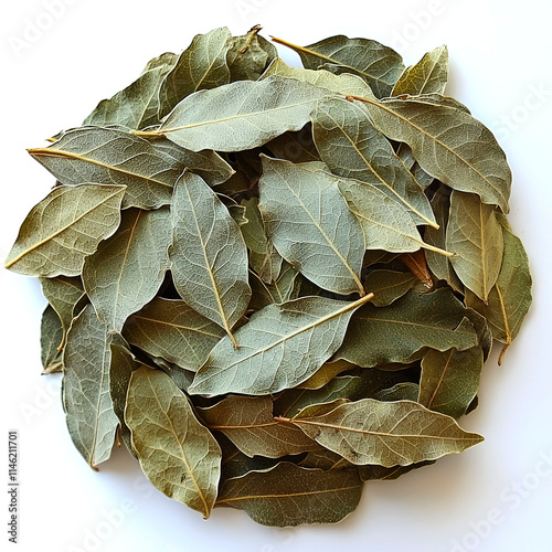 Fototapeta - Dried bay leaves pile, top view. (1)